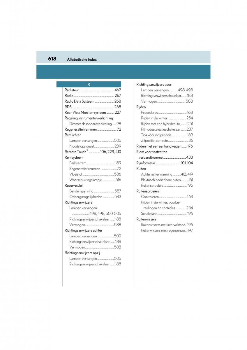 Regeneratief remmen. 72Rijmodusselectieschakelaar.237
