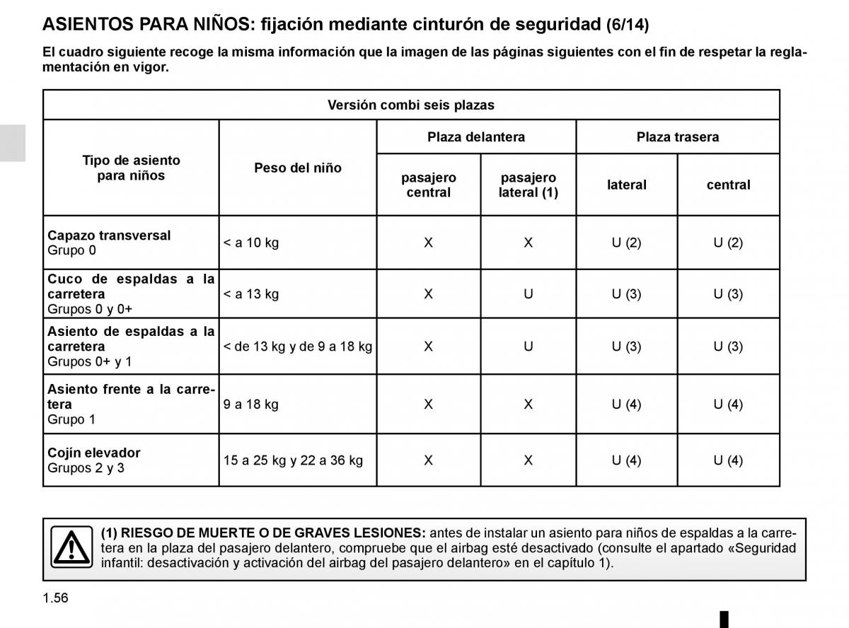 tera en la plaza del pasajero delantero, compruebe que el airbag esté desactivado (consulte el apartado «Seguridad