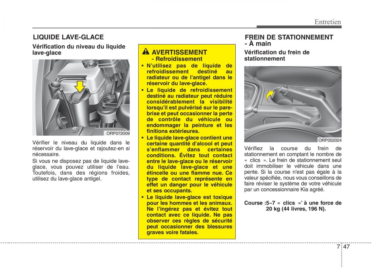 lave-glace AVERTISSEMENT Vérification du frein de