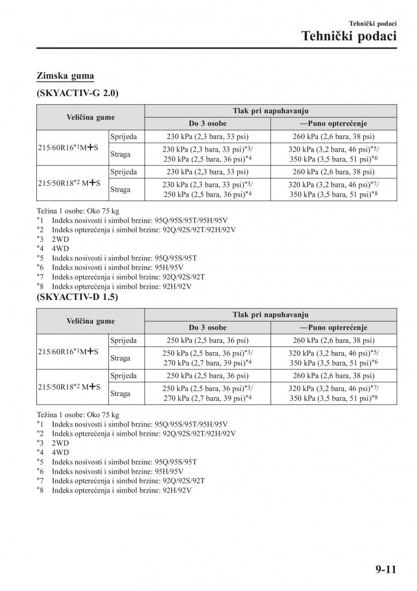Sprijeda 230 kPa (2,3 bara, 33 psi) 260 kPa (2,6 bara, 38 psi)