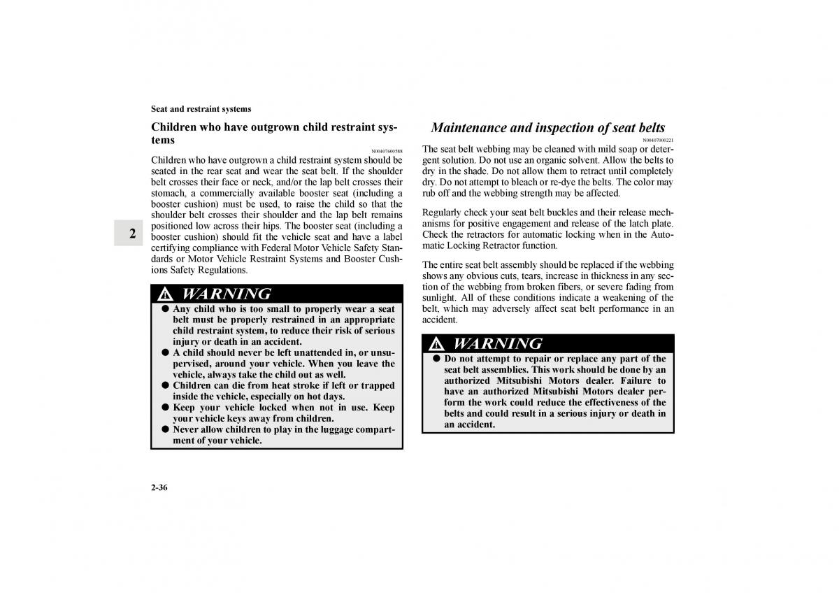 vehicle, always take the child out as well. authorized Mitsubishi Motors dealer. Failure to