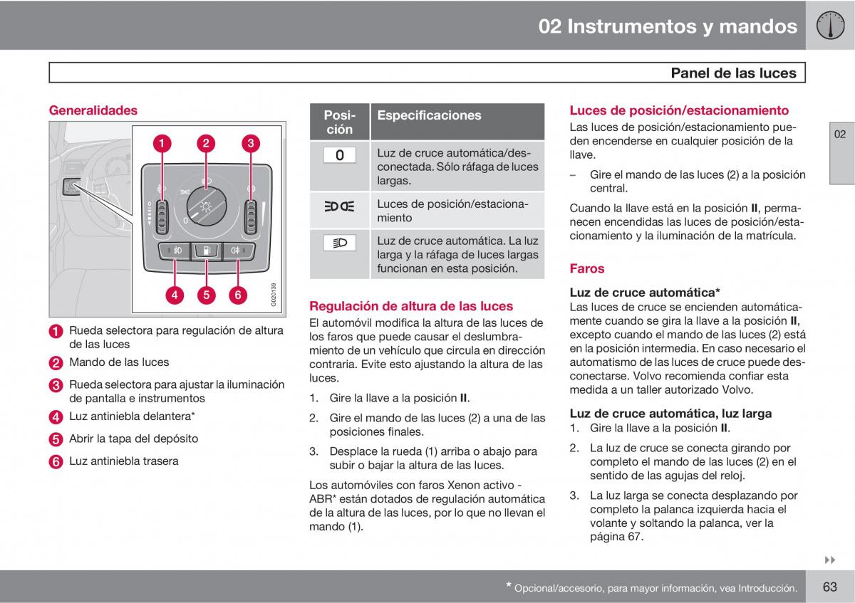 Rueda selectora para ajustar la iluminación luces. conectarse. Volvo recomienda confiar esta
