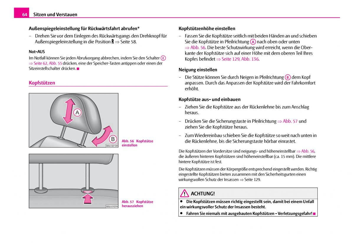 Abb. 56 Kopfstütze die Rückenlehne, bis die Sicherungstaste hörbar einrastet.