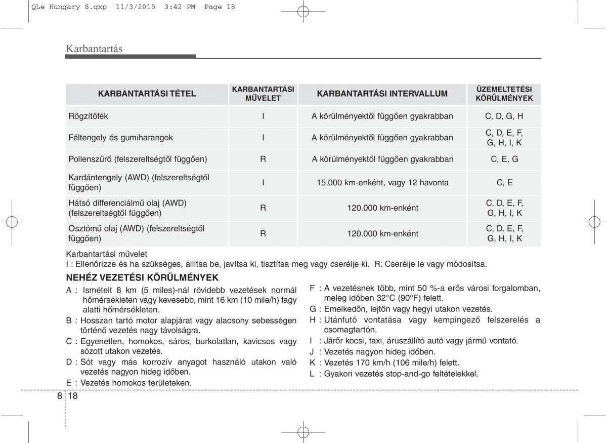 Kardántengely (AWD) (felszereltségtőlI 15.000 km-enként, vagy 12 havontaC, E