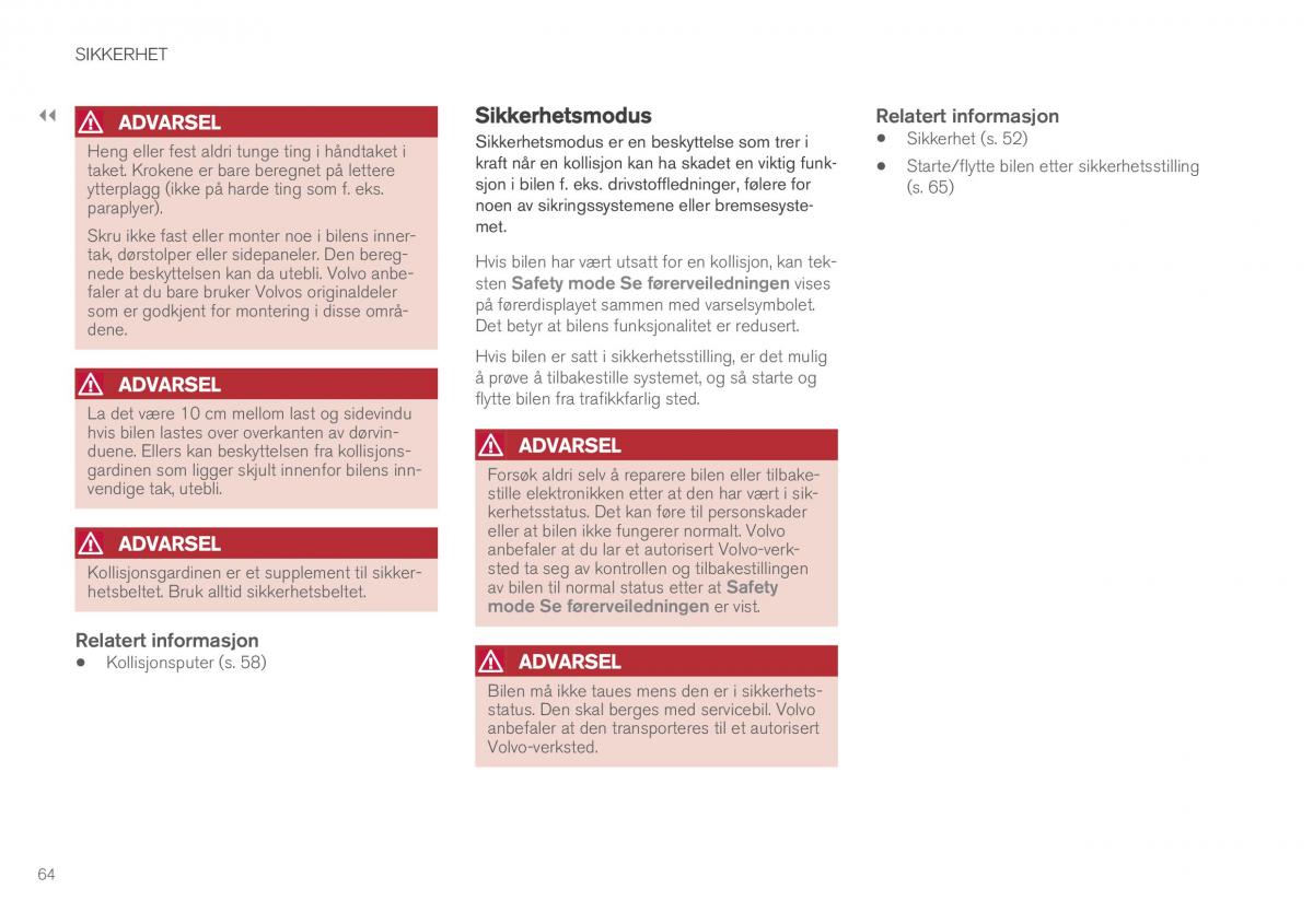 ADVARSEL eller at bilen ikke fungerer normalt. Volvo