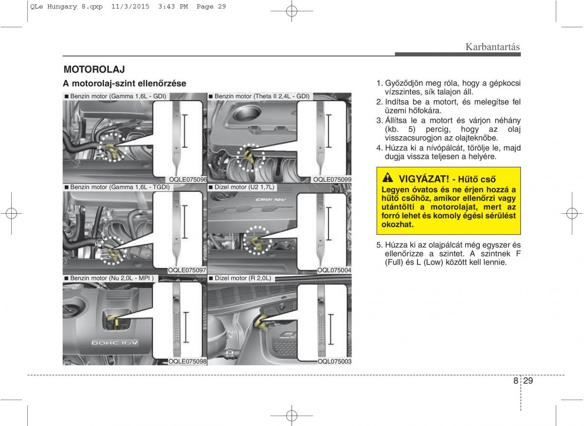 ■Benzin motor (Gamma 1,6L - TGDI) ■Dízel motor (U2 1,7L) Legyen óvatos és ne érjen hozzá a