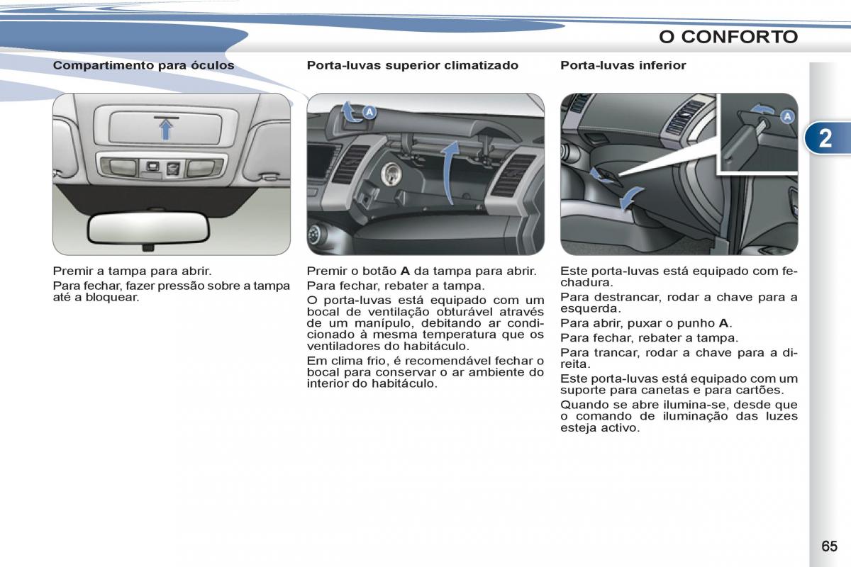 Premir a tampa para abrir. Premir o botão A da tampa para abrir. Este porta-luvas está equipado com fe-