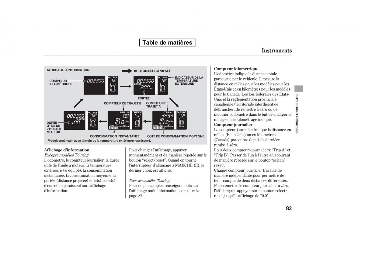 d’information. l’affichage multi-information, consulter la l’afficherpuis appuyer sur le bouton select/