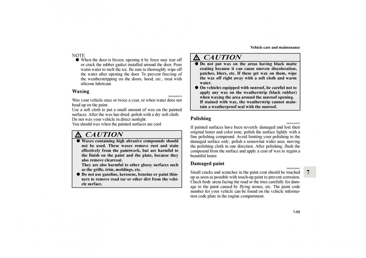 Waxing ●On vehicles equipped with sunroof, be careful not to