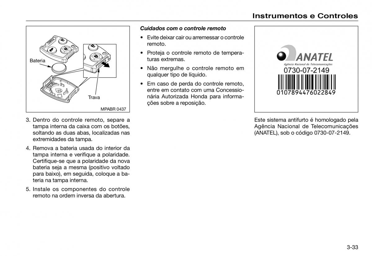 3. Dentro do controle remoto, separe a Este sistema antifurto é homologado pela