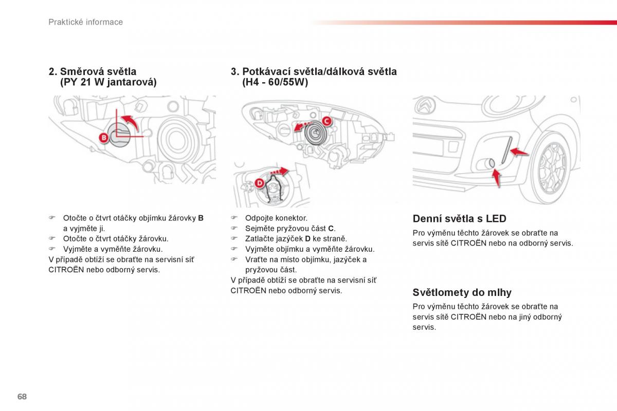 ) Otočte o čtvrt otáčky žárovku. ) Začttela jazýček D ke straně. servis sítě CITROËN nebo na odborný servis.