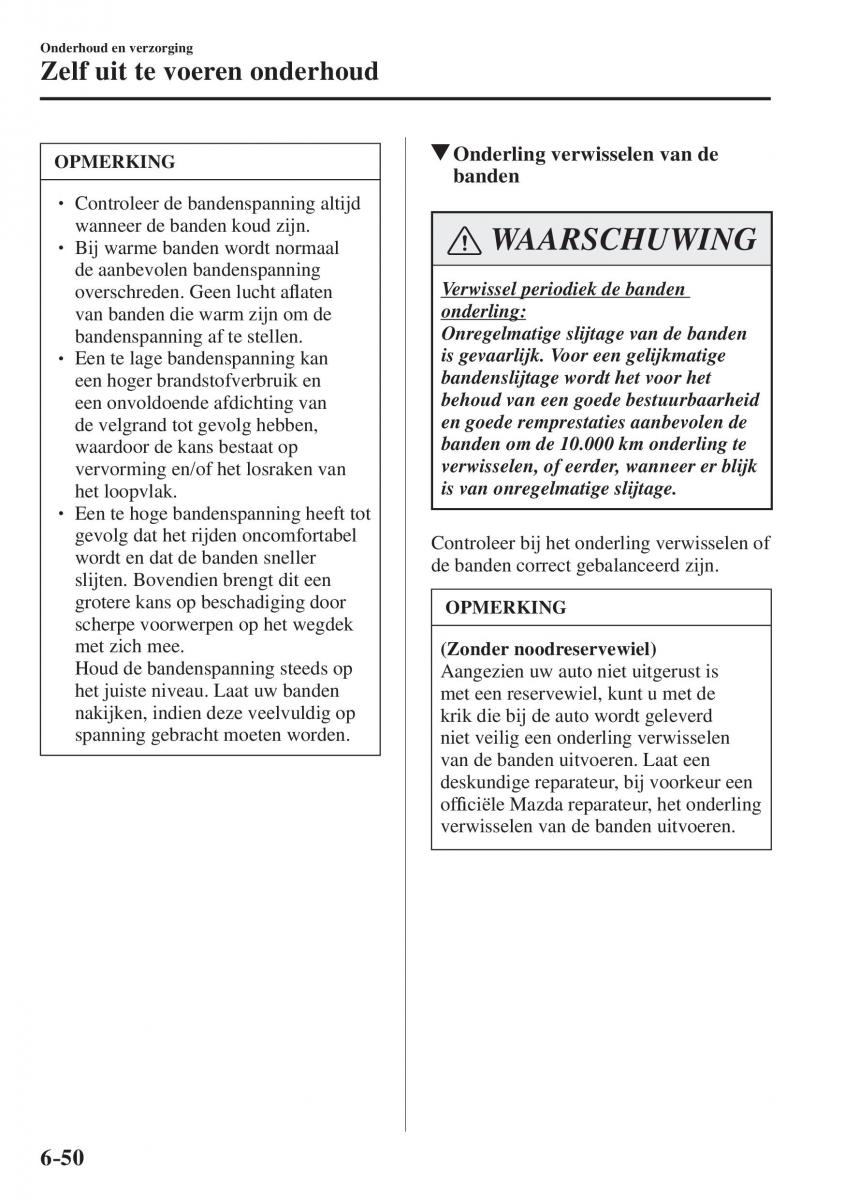 Houd de bandenspanning steeds op Aangezien uw auto niet uitgerust is