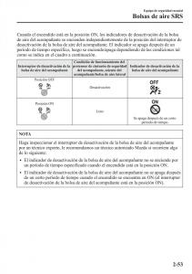 Interruptor de desactivación de la bolsa de aire del acompañanteí (página 2-52)