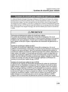 Cevéhicule Mazda est équipé d’ancrages inférieurs LATCH pour la fixation de systèmes