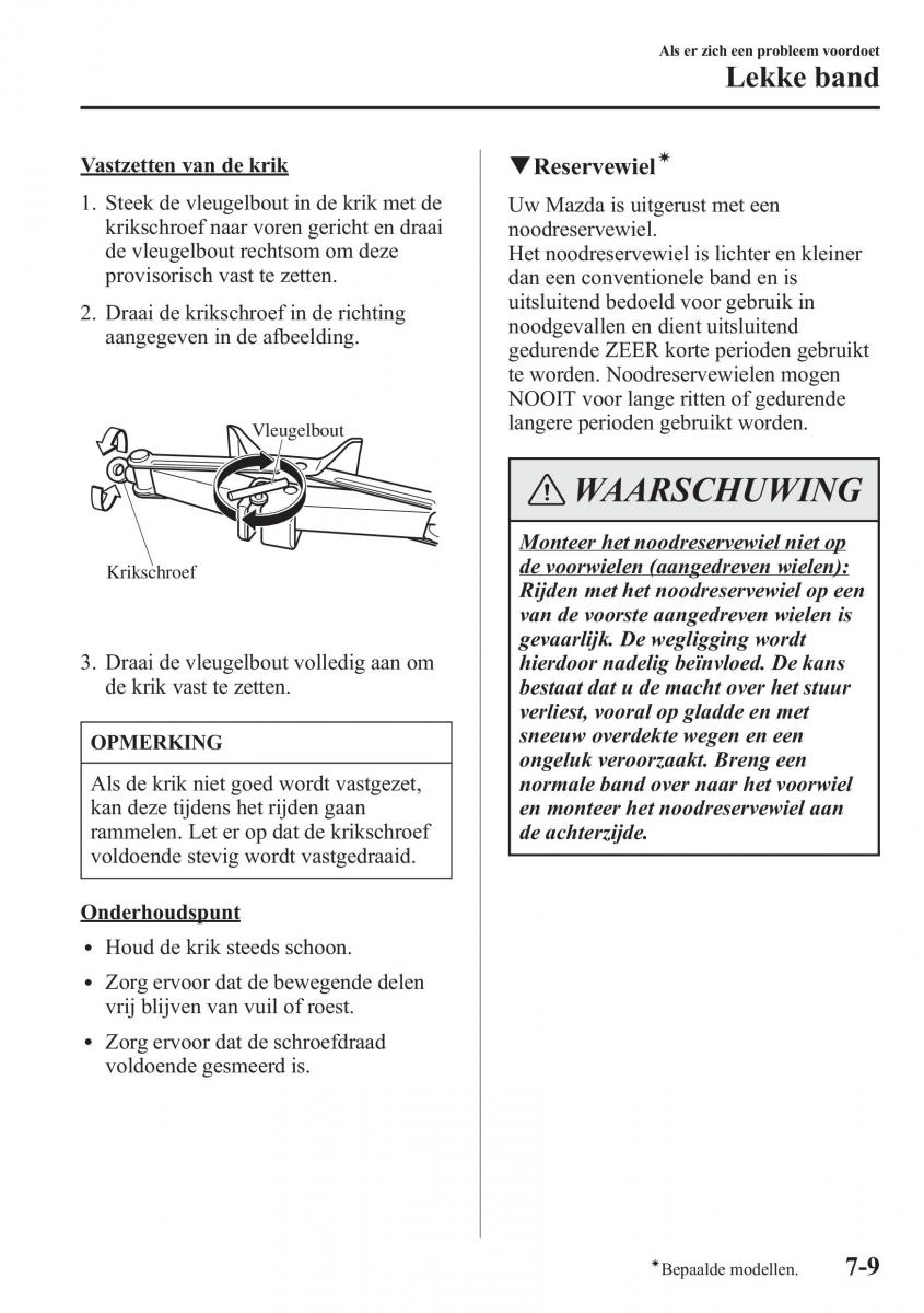 1. Steek de vleugelbout in de krik met de UwMazdaisuitgerust met een