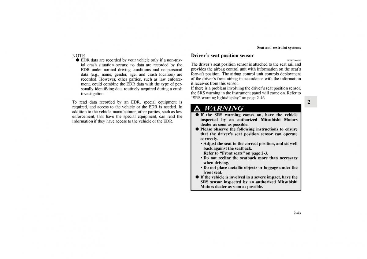 information if they have access to the vehicle or the EDR. inspected by an authorized Mitsubishi Motors