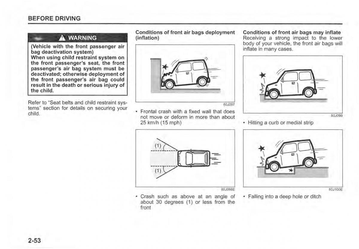 Conditions of front air bags deployment Conditions of front air bags may inflate
