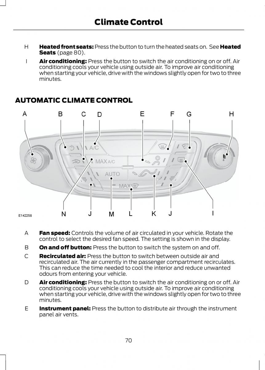 D Air conditioning: Press the button to switch the air conditioning on or off. Air