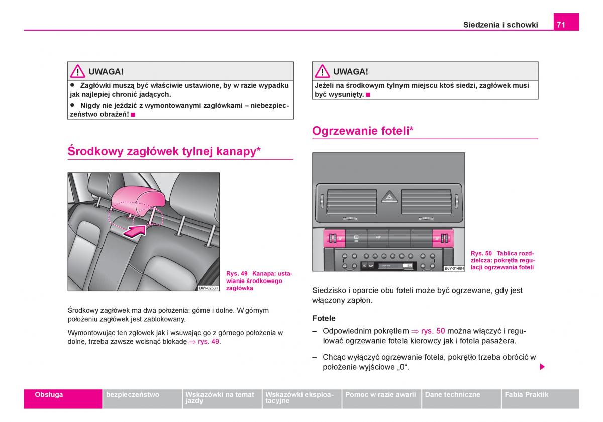 dolne, trzeba zawsze wcisnąć blokadę ⇒ rys. 49.lować ogrzewanie fotela kierowcy jak i fotela pasażera.