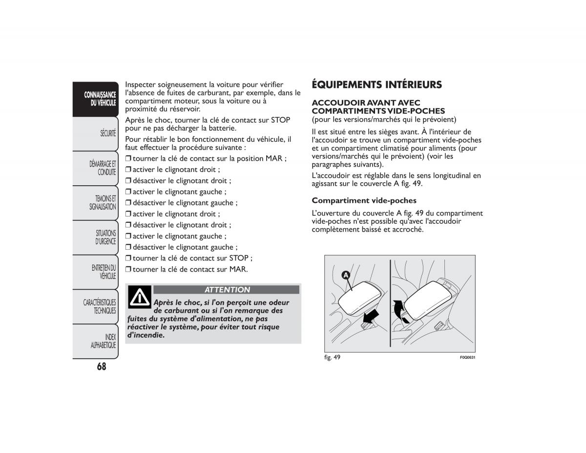 ❒activer le clignotant droit ; L’ouverture du couvercle A fig. 49 du compartiment