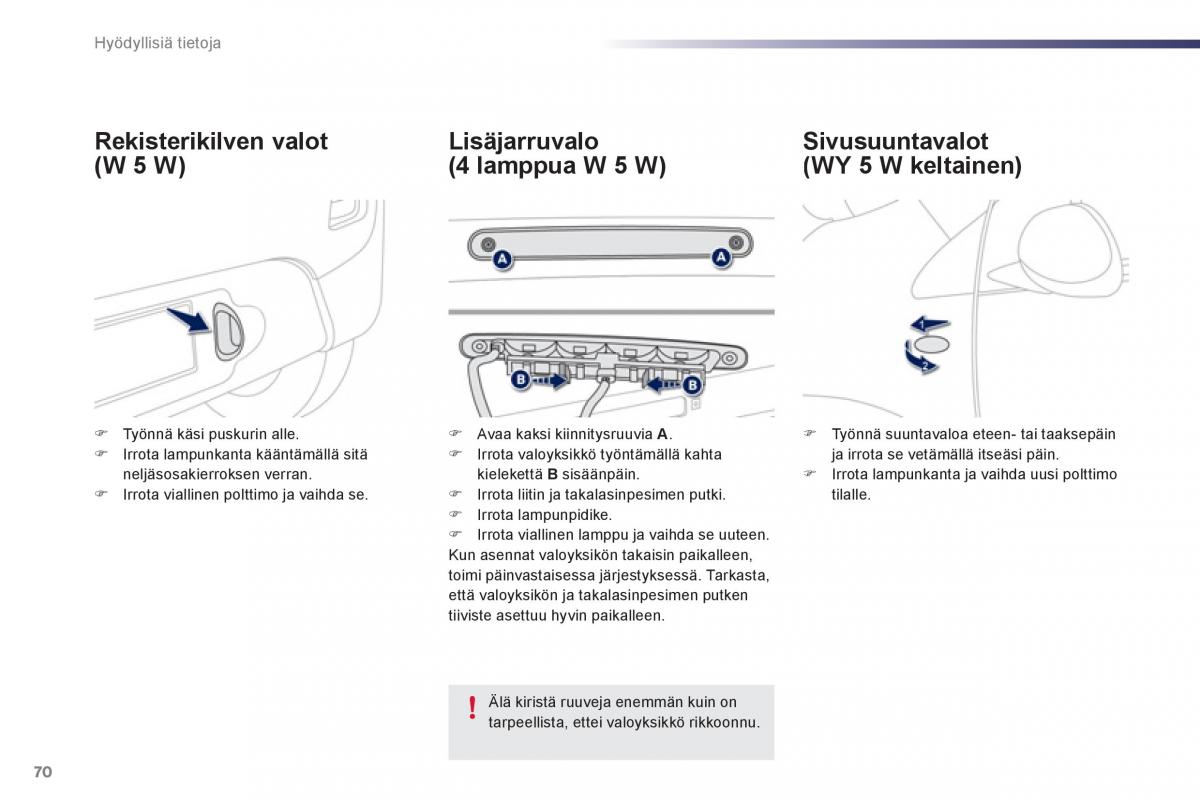 neljäsosakierroksen verran. kielekettä B sisäänpäin. ) Irrota lampunkanta ja vaihda uusi polttimo