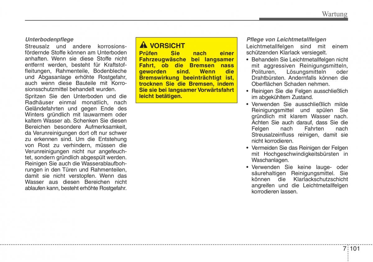 ablaufen kann, besteht erhöhte Rostgefahr. angreifen und die Leichtmetallfelgen