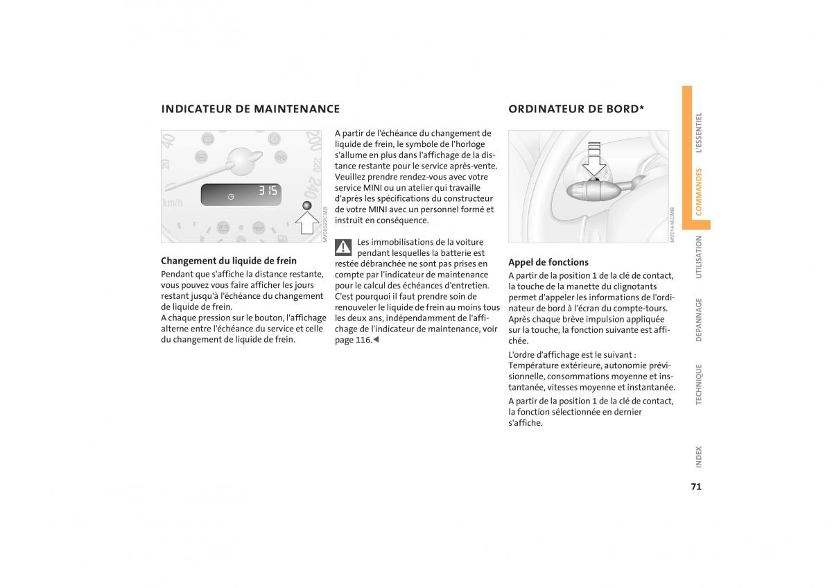 alterne entre l'échéance du service et celle chage de l'indicateur de maintenance, voir sur la touche, la fonction suivante est affi-
