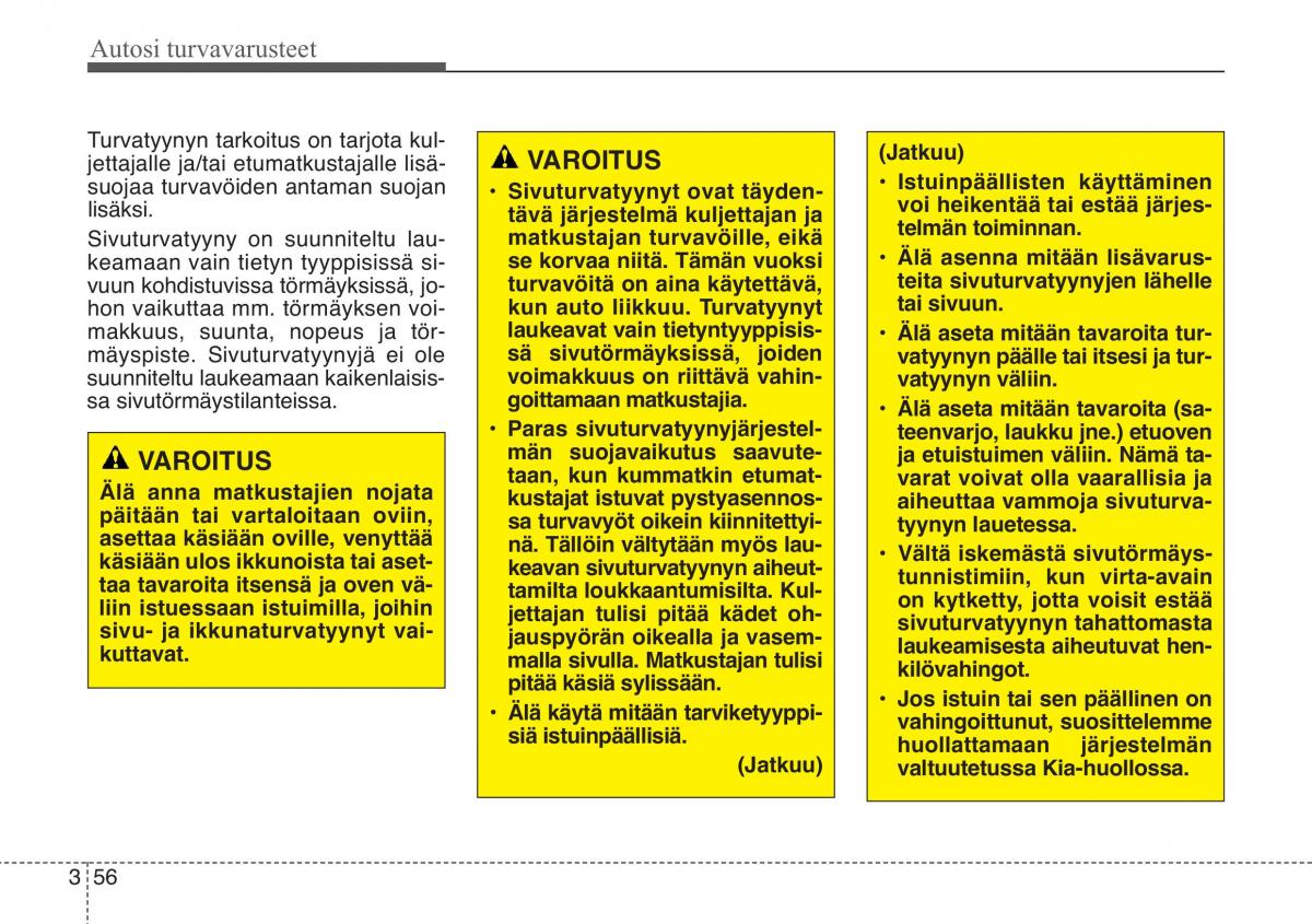 sa sivutörmäystilanteissa.goittamaan matkustajia.• Älä aseta mitään tavaroita (sa-