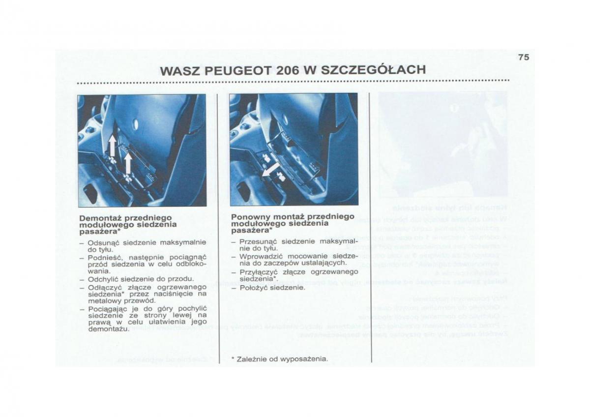 owners manual Peugeot 206 - year of production: 1998, 1999, 2000, 2001, 2002, 2003, 2004, 2005, 2006, 2007, 2008, 2009, 2010, 2011, 2012 - Peugeot 206 instrukcja obslugi PL