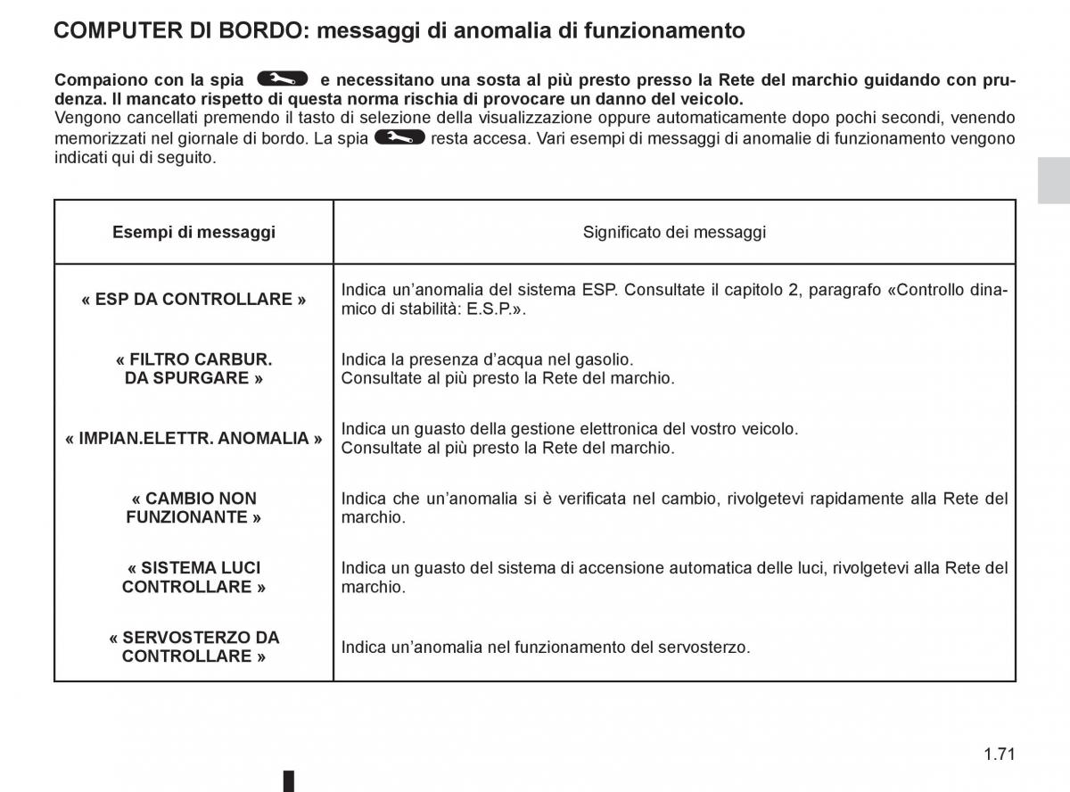 COMPUTER DI BORDO: messaggi di anomalia di funzionamento