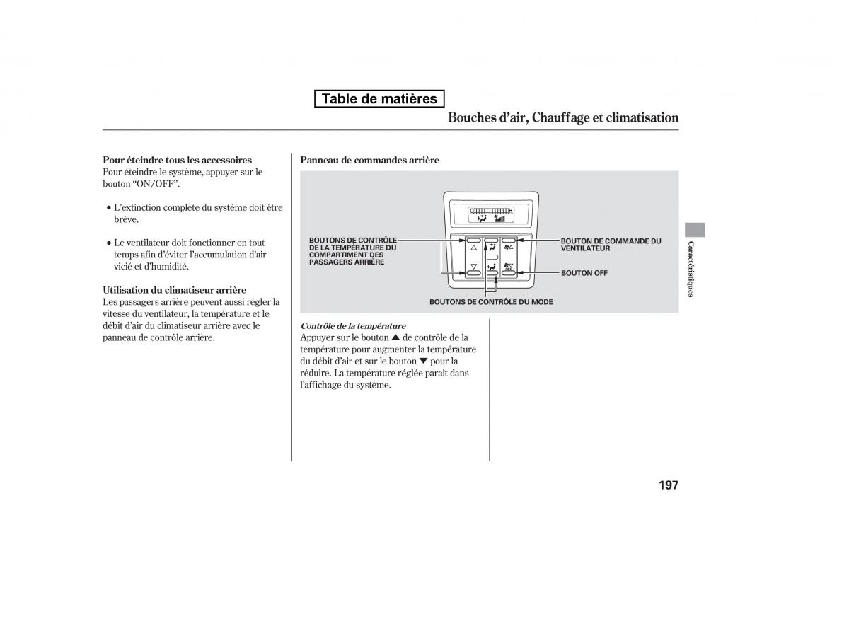 débit d’air du climatiseur arrière avec le Contrôledelatempérature