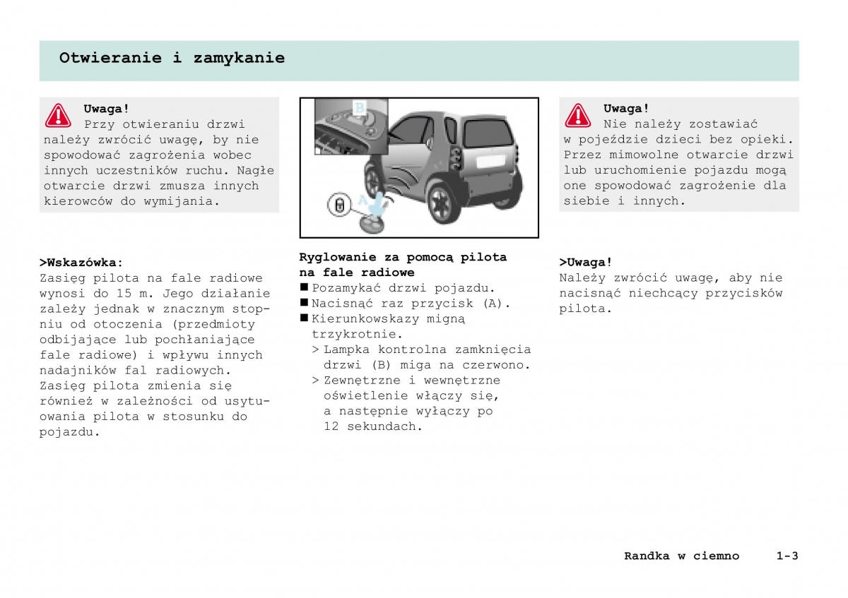 owners manual Smart Fortwo - year of production: 1998, 1999, 2000, 2001, 2002, 2003, 2004, 2005, 2006, 2007 - Smart Fortwo I 1 City instrukcja obslugi PL