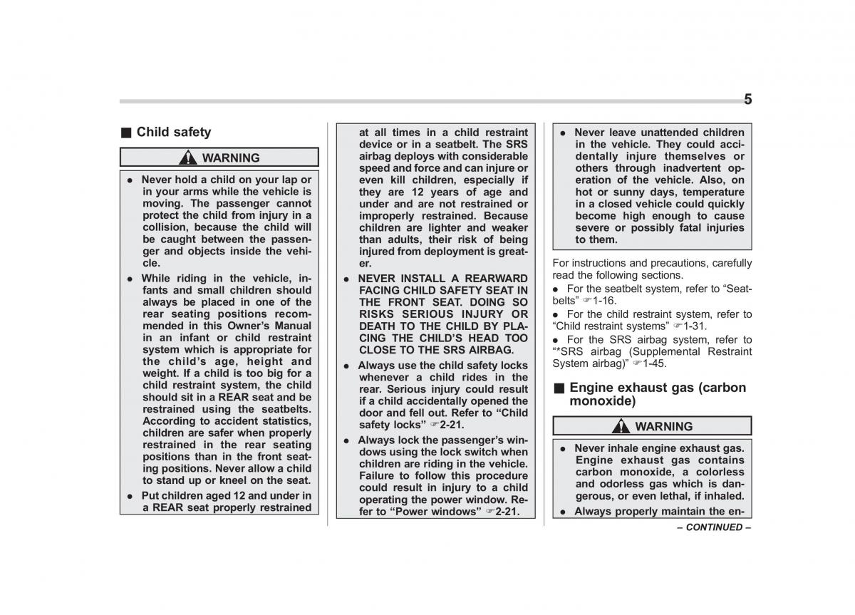child restraint system, the childrear. Serious injury could result&Engine exhaust gas (carbon