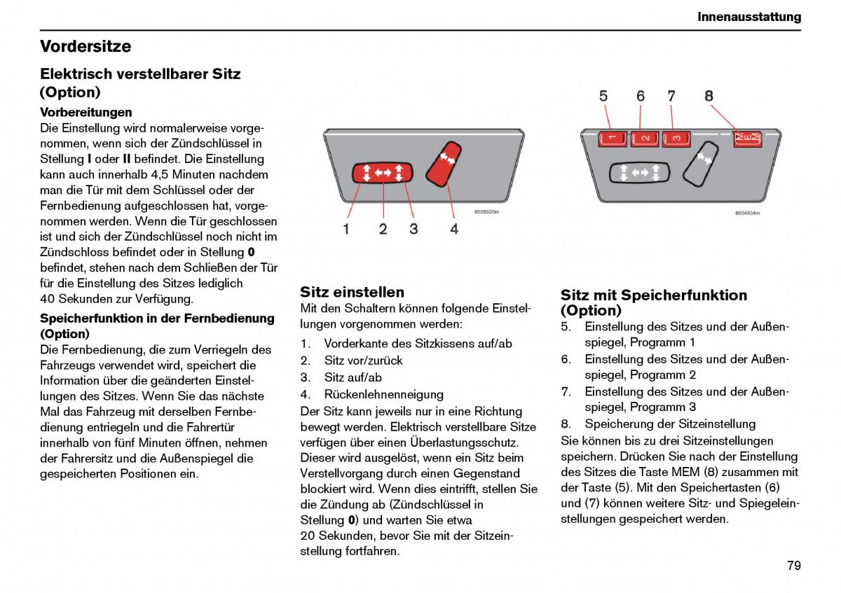 dienung entriegeln und die Fahrertürbewegtwerden. Elektrisch verstellbare Sitze8.Speicherung der Sitzeinstellung