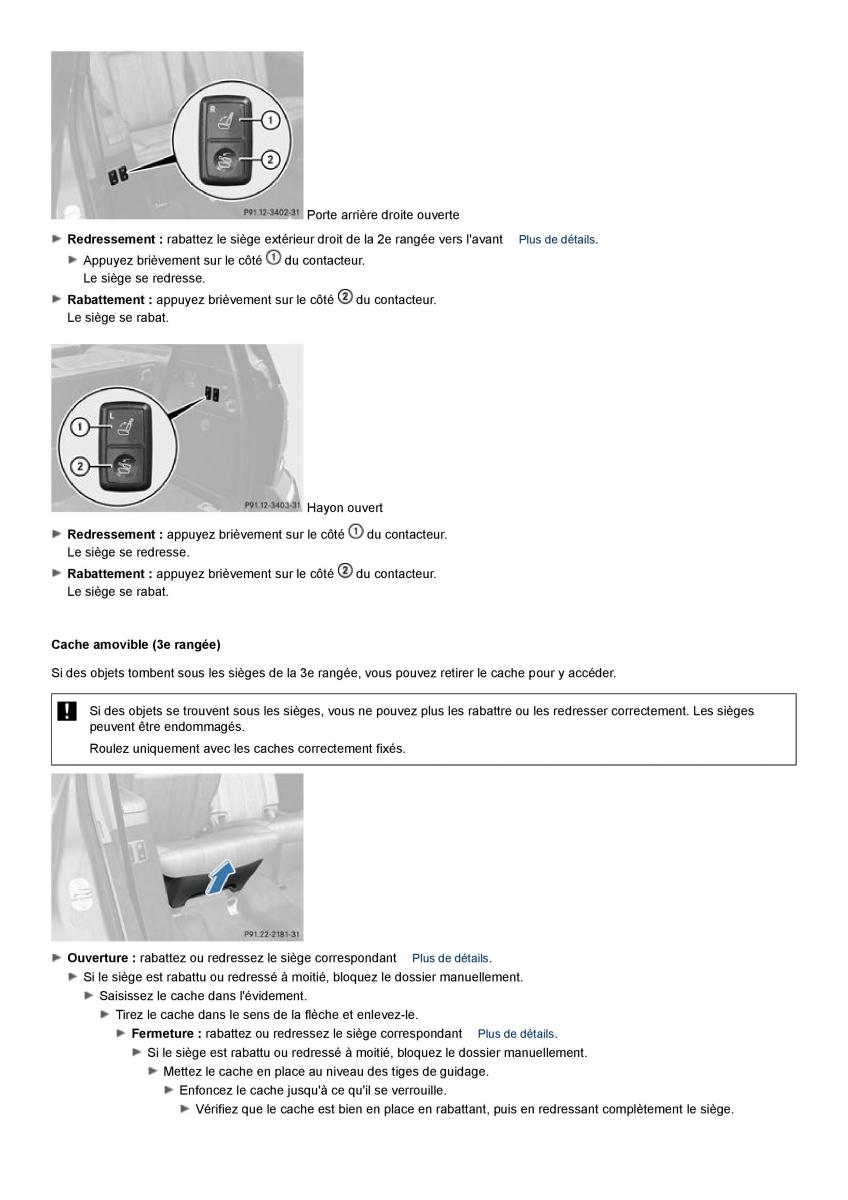Fermeture : rabattez ou redressez le siège correspondantPlus de détails.