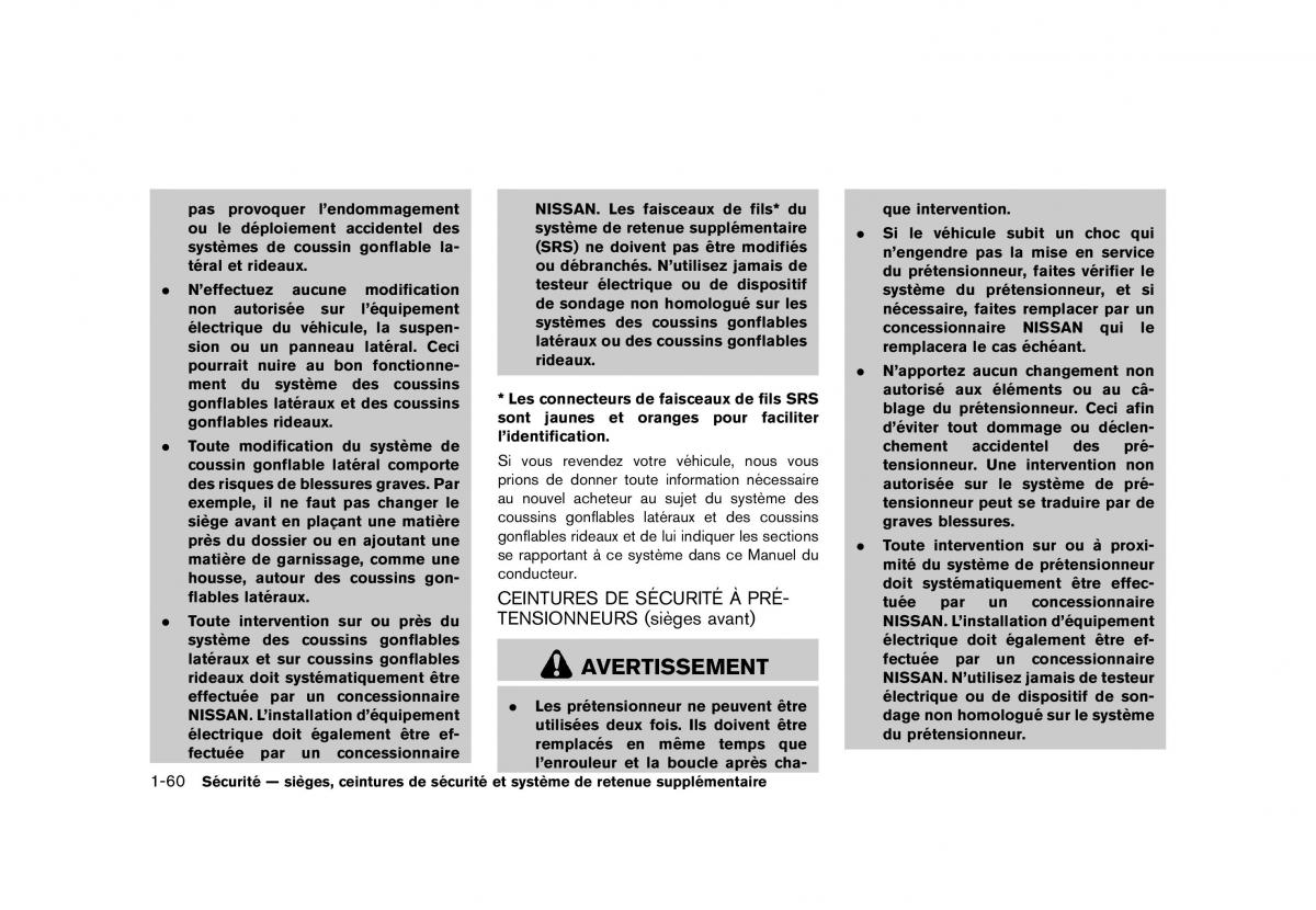 systemes de coussin gonflable la- (SRS) ne doivent pas etre modifies n’engendre pas la mise en service