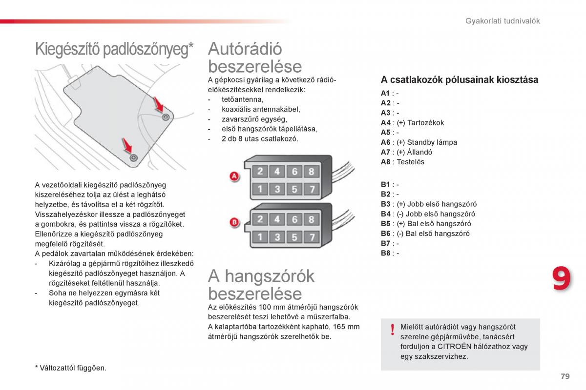 A gépkocsi gyárilag a következő rádió- A c satlakozók pólusainak kiosztása