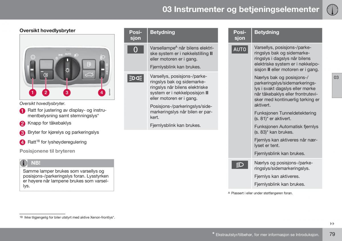 * Ekstrautstyr/tilbehør, for mer informasjon se Introduksjon.79