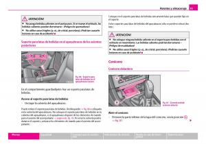 techo autorizada (inclusive el sistema de soportes) de 100 kg y el peso total auto- En las cavidades se pueden colocar dos latas de bebidas ⇒ fig. 85.