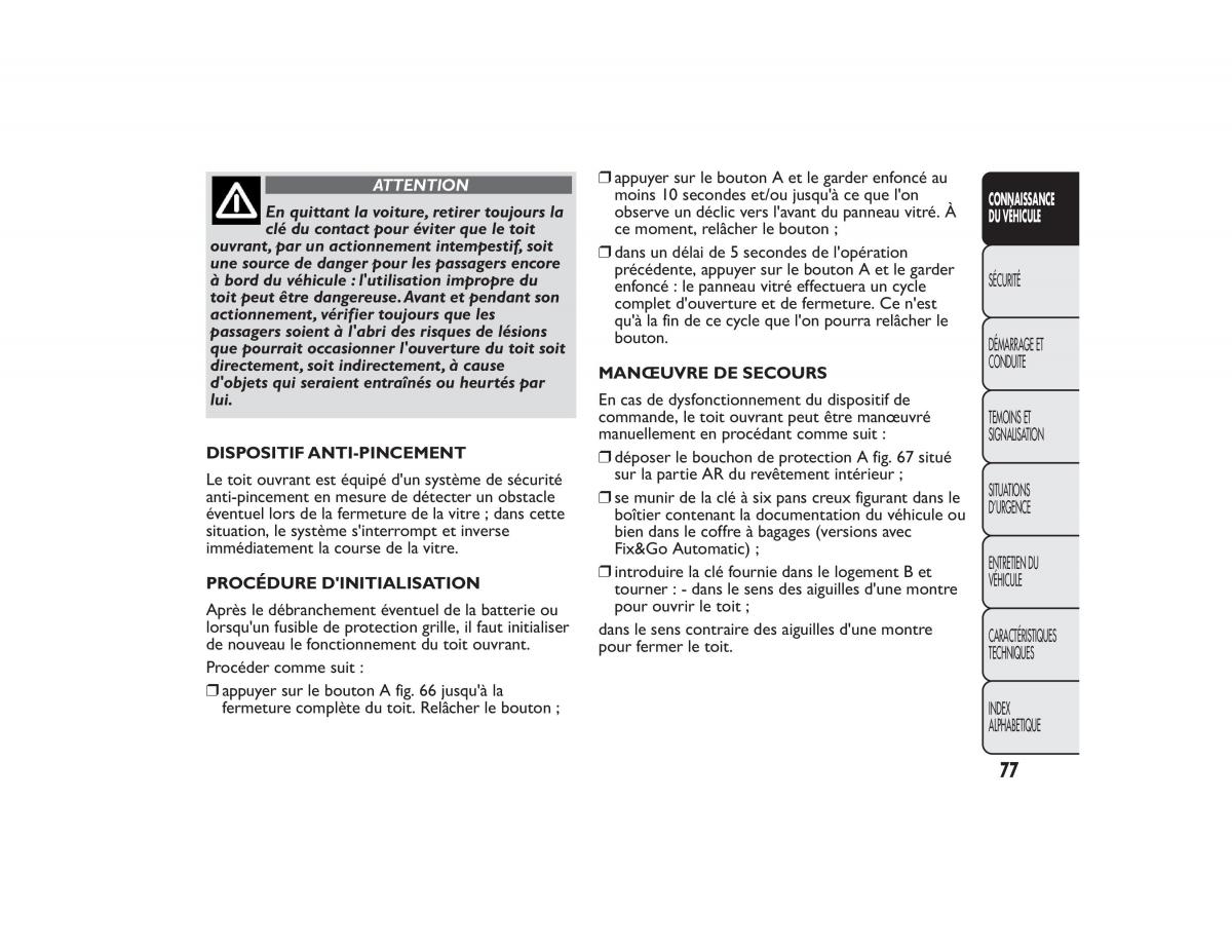 Le toit ouvrant est équipé d'un système de sécuritésur la partie AR du revêtement intérieur ;SITUATIONS