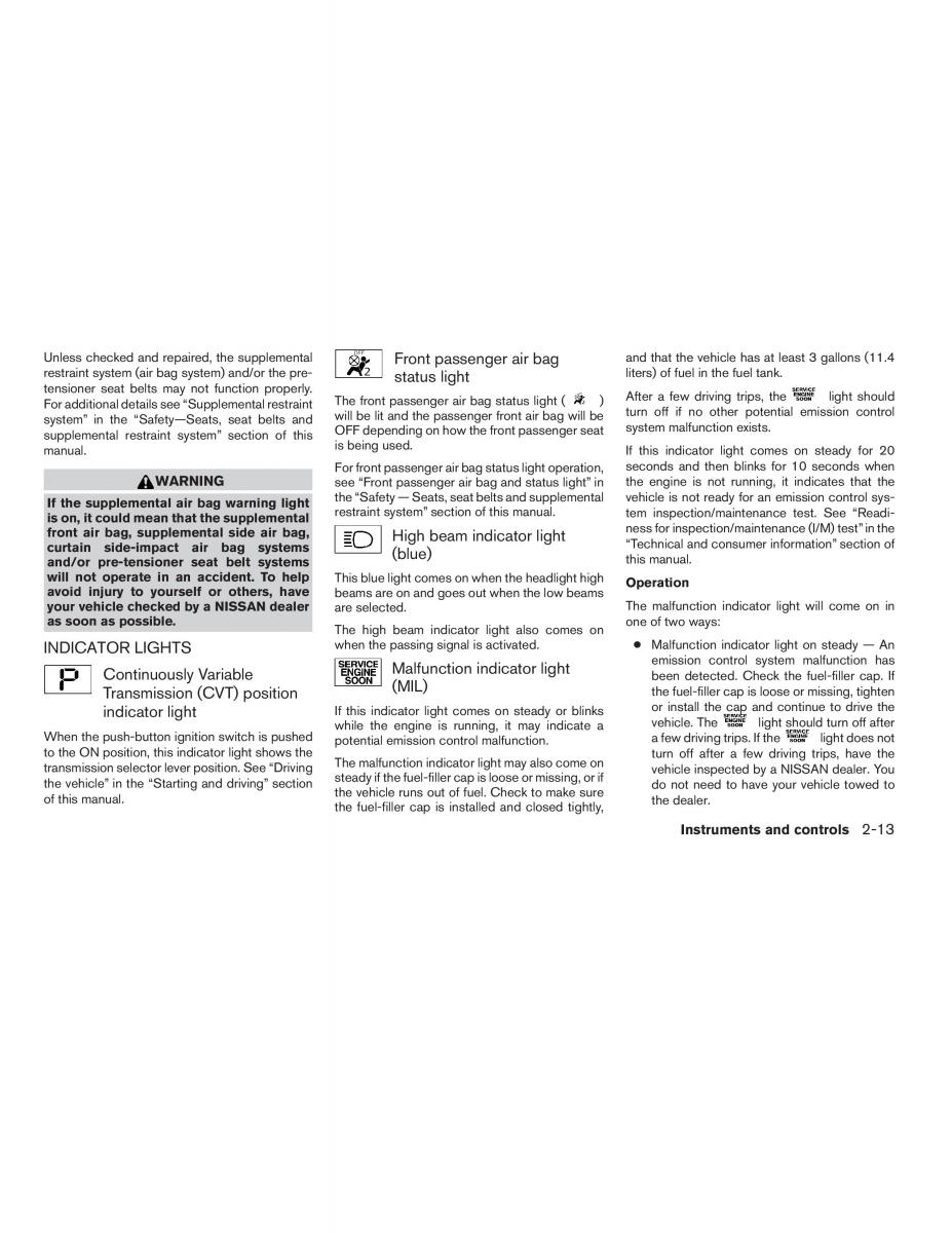 Foradditionaldetailssee“SupplementalrestraintThe front passenger air bag status light ()turn off if no other potential emission control