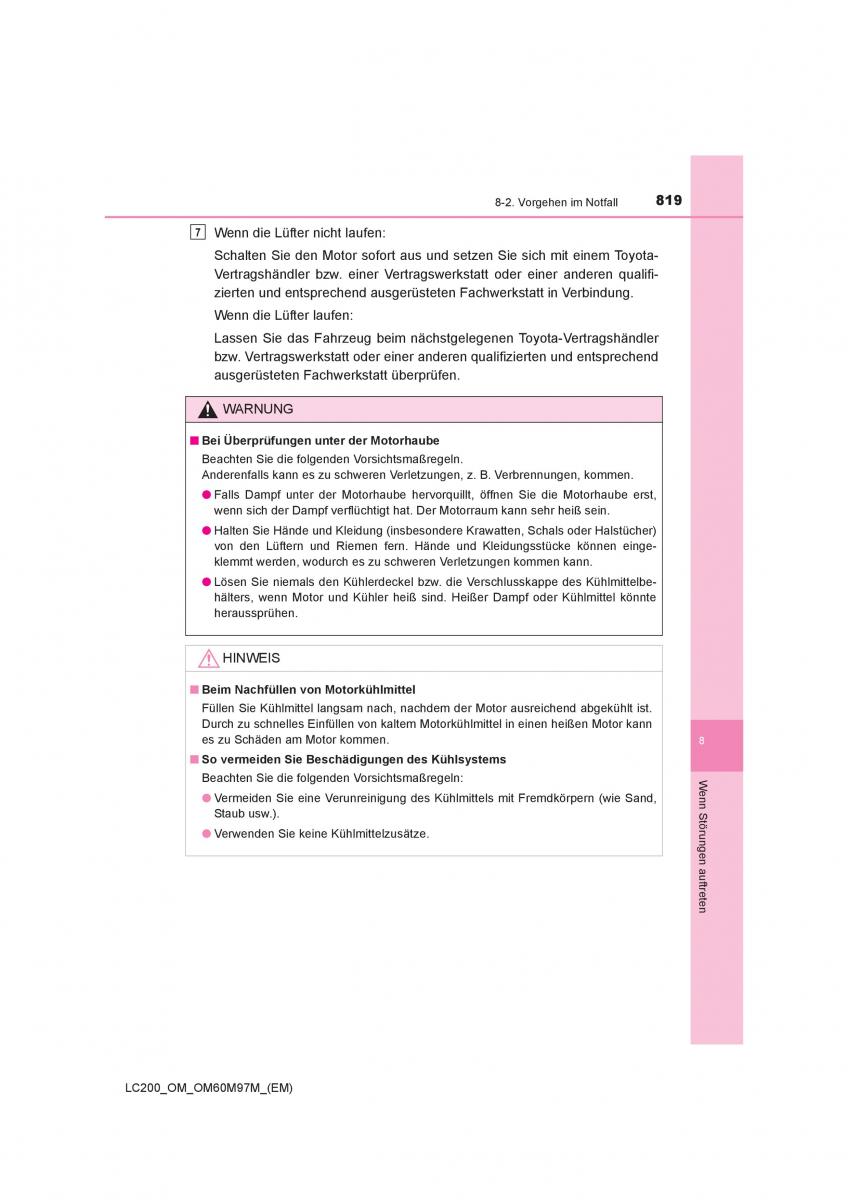 owners manual Toyota Land Cruiser - year of production: 2007 - Toyota Land Cruiser J200 Handbuch DE