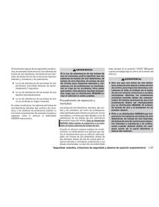 cortina para impactos laterales y volca-● Si el vehículo sufre un choque frontal ydistribuidor NISSAN. Los procedimien-