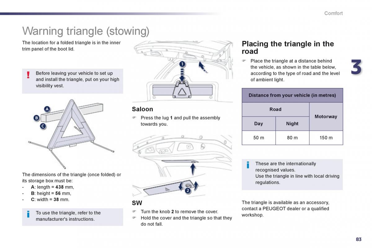 To use the triangle, refer to the Turn the knob 2 to remove the cover. contact a PEUGEOT dealer or a qualified