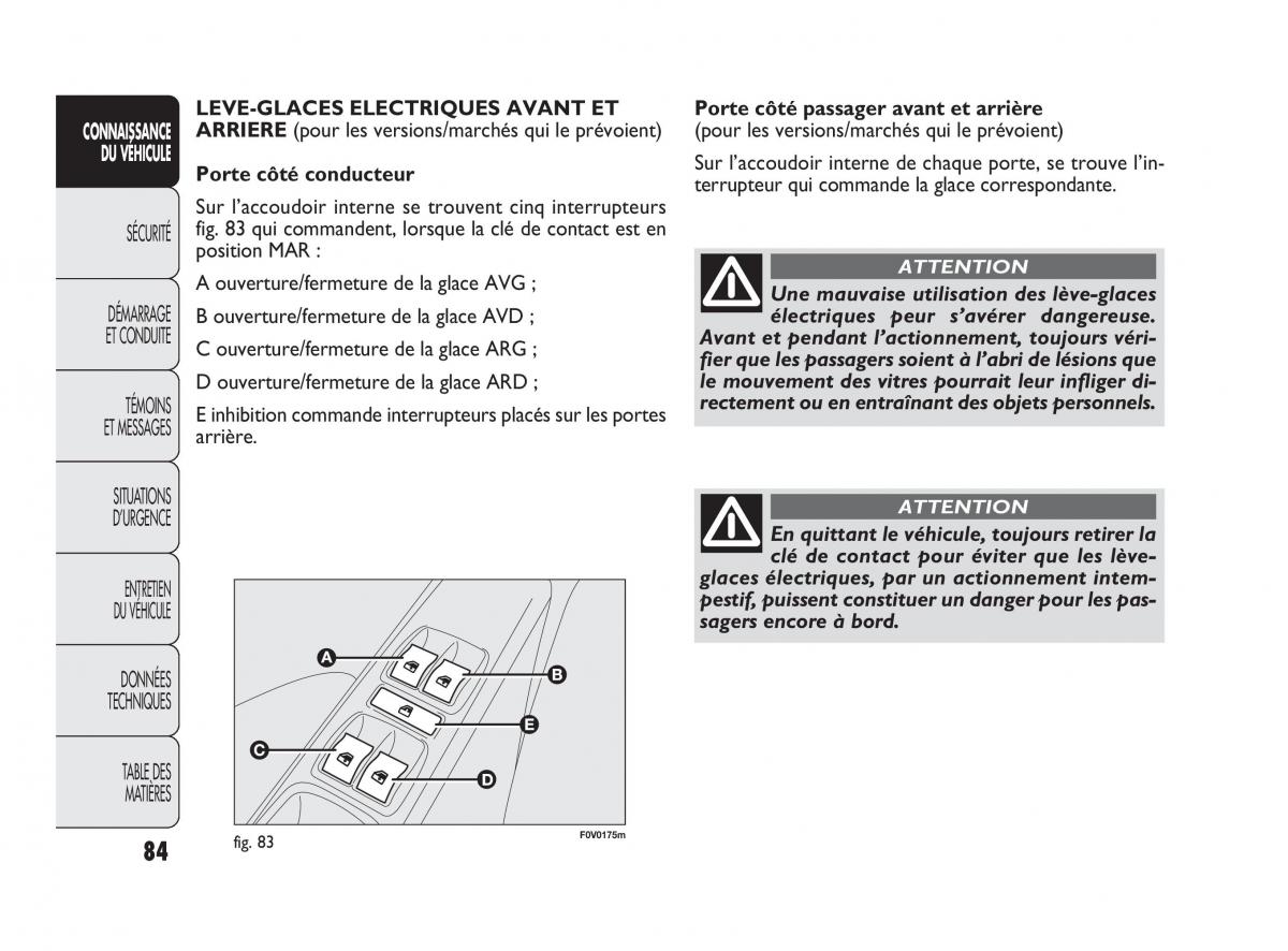 SÉCURITÉ fig. 83 qui commandent, lorsque la clé de contact est en
