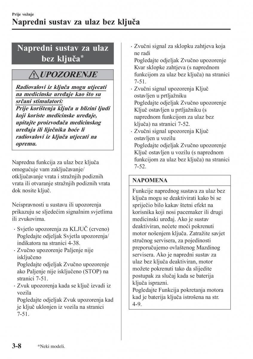 UPOZORENJE funkcijom za ulaz bez ključa) na stranici