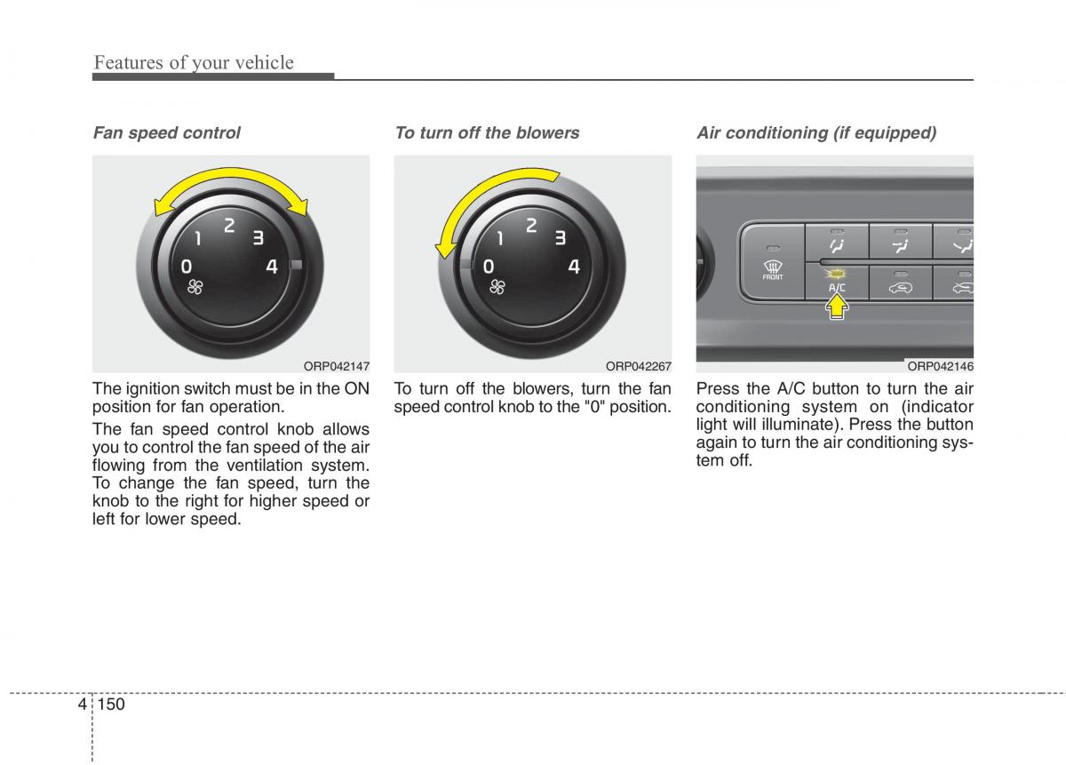Fan speed control To turn off the blowers Air conditioning (if equipped)