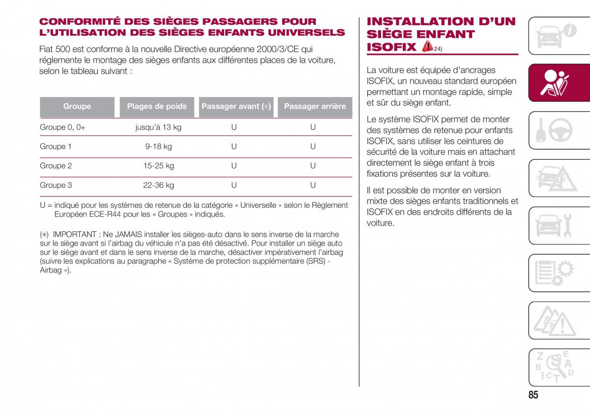 Fiat 500 est conforme à la nouvelle Directive européenne 2000/3/CE quiISOFIX 24)