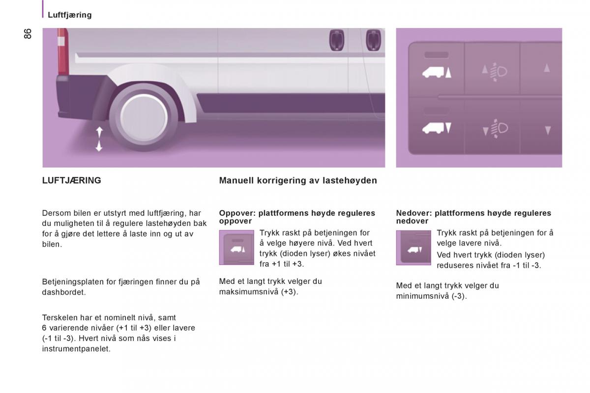 Dersom bilen er utstyrt med luftfjæring, har Oppover: plattformens høyde reguleres Nedover: plattformens høyde reguleres