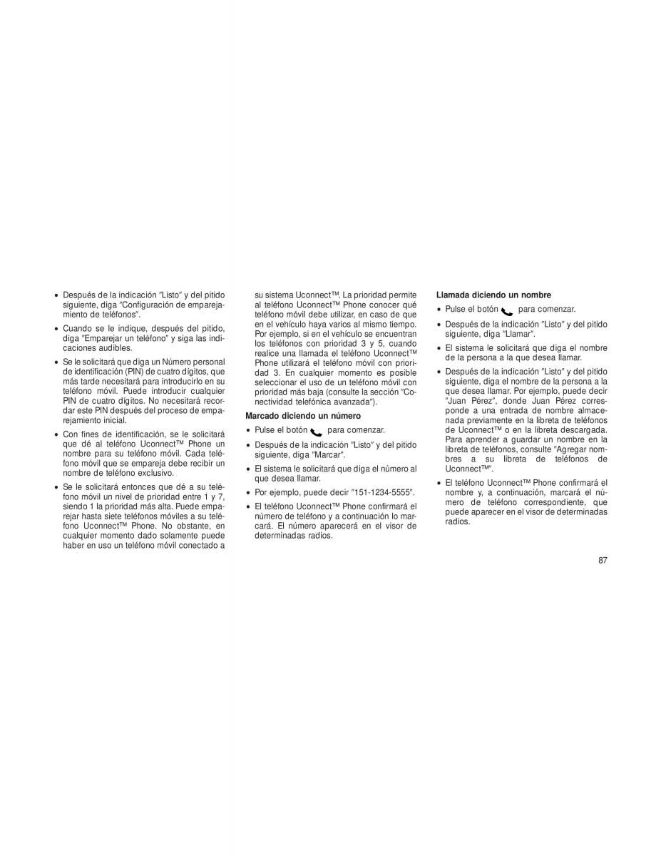 • Se le solicitará entonces que dé a su telé-que desea llamar.• El teléfono Uconnect™ Phone confirmará el